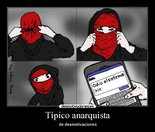 @gungrave Se que los anarcos insurrectos, se pasan haciendo de la suyas a lo largo y ancho del mundo, acá en Uruguay, no hace mucho tomaron la Suprema Corte de Justicia, y mantuvieron a los jueces de la corte cautivos en una habitación, también estuvieron metidos en la toma del Concejo Directivo Central de Eduación, siempre rompiendo todo lo que puedan en el proceso, y estaban atacando vienes públicos no al gran capital.,..... También estuvieron metidos con uno de los refugiados que habian traido de Guantanamo, y le llenaron tanto la cabeza al tipo que casi muere haciendo huelga de hambre, y los oyes hablar y lo unico que saben decir son los putos esloganes de siempre "Estado asesino" y cosas por el estilo y poner los dedos en V, dan lástima @enjey @coloco @kaiki