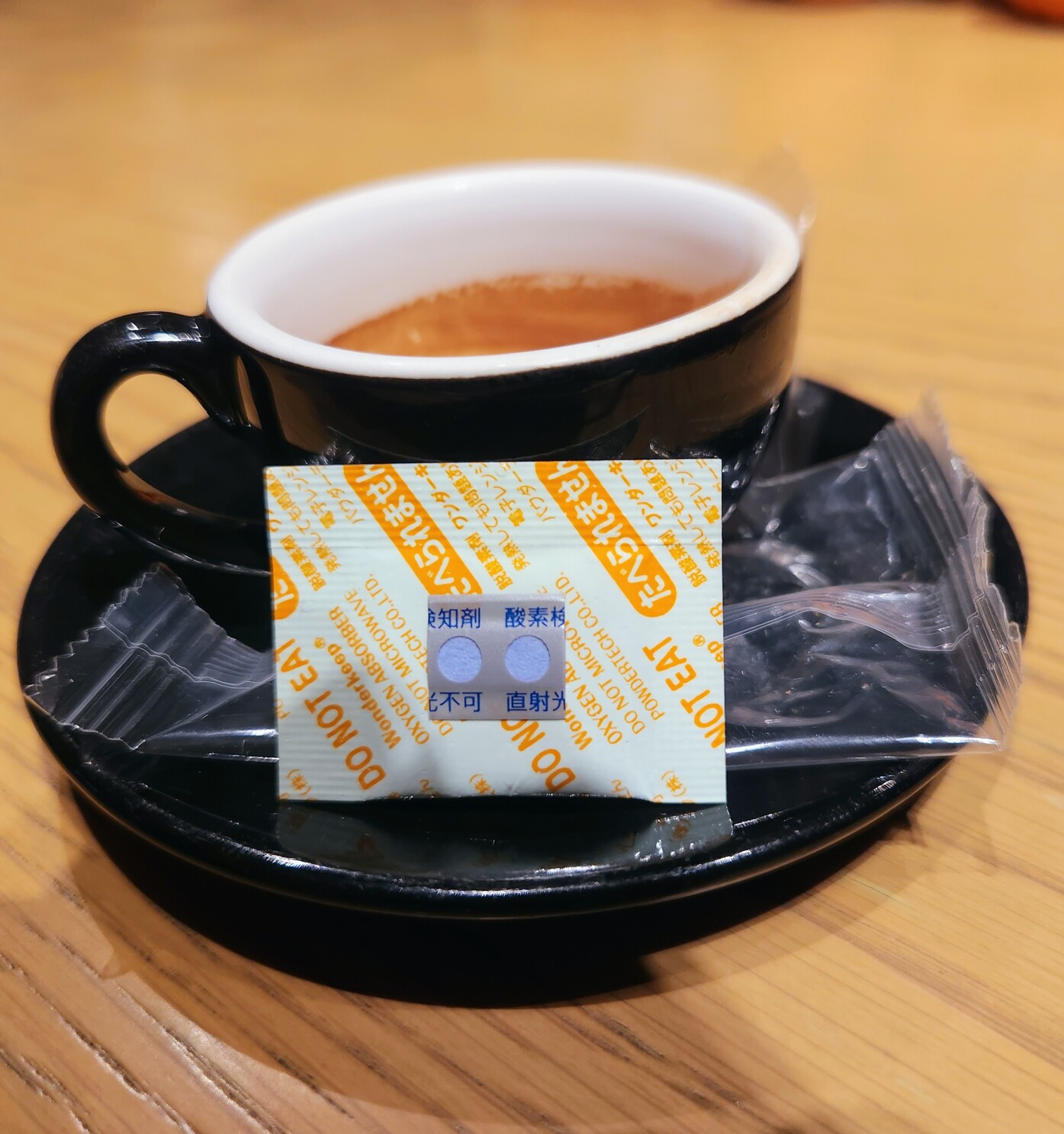 The small cookie that came with my espresso had an oxidation indicator inside the plastic package: the two dots were initially pink, and turned blue in a few seconds after opening the package.