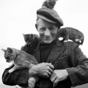Icelandic farmer with his "mousekeepers". Ca. 1940s. #CatsOfYore #Cat #Cats #History https://icelandmag.is/article/historic-photo-day-unidentified-icelandic-farmer-poses-his-kittens