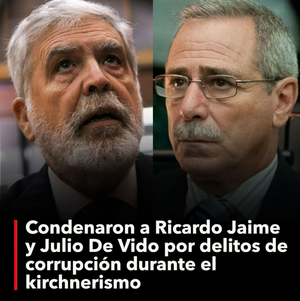 Condenaron a Ricardo #Jaime y Julio #DeVido por delitos de #corrupción durante el #kirchnerismo El ex secretario de Transporte de #Argentina recibió una pena de ocho años de prisión, mientras que al ex ministro le correspondió una de cuatro años. Las sentencias corresponden a varios juicios, entre los que se destacan la investigación de la compra de trenes a España y Portugal.
