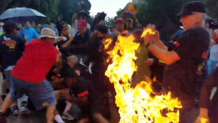 US flags burned by protesters before #Trump's Independence Day address https://on.rt.com/9xkh -