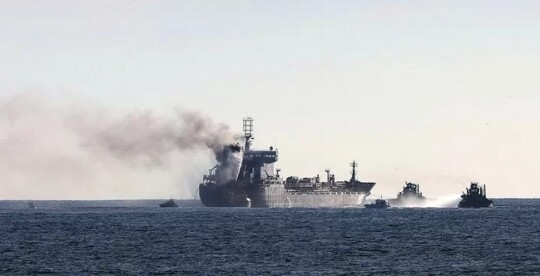 El petrolero Greta K, con bandera de Malta y cargado de diésel y de combustible de aviación, lleva ardiendo desde ayer frente a Oporto