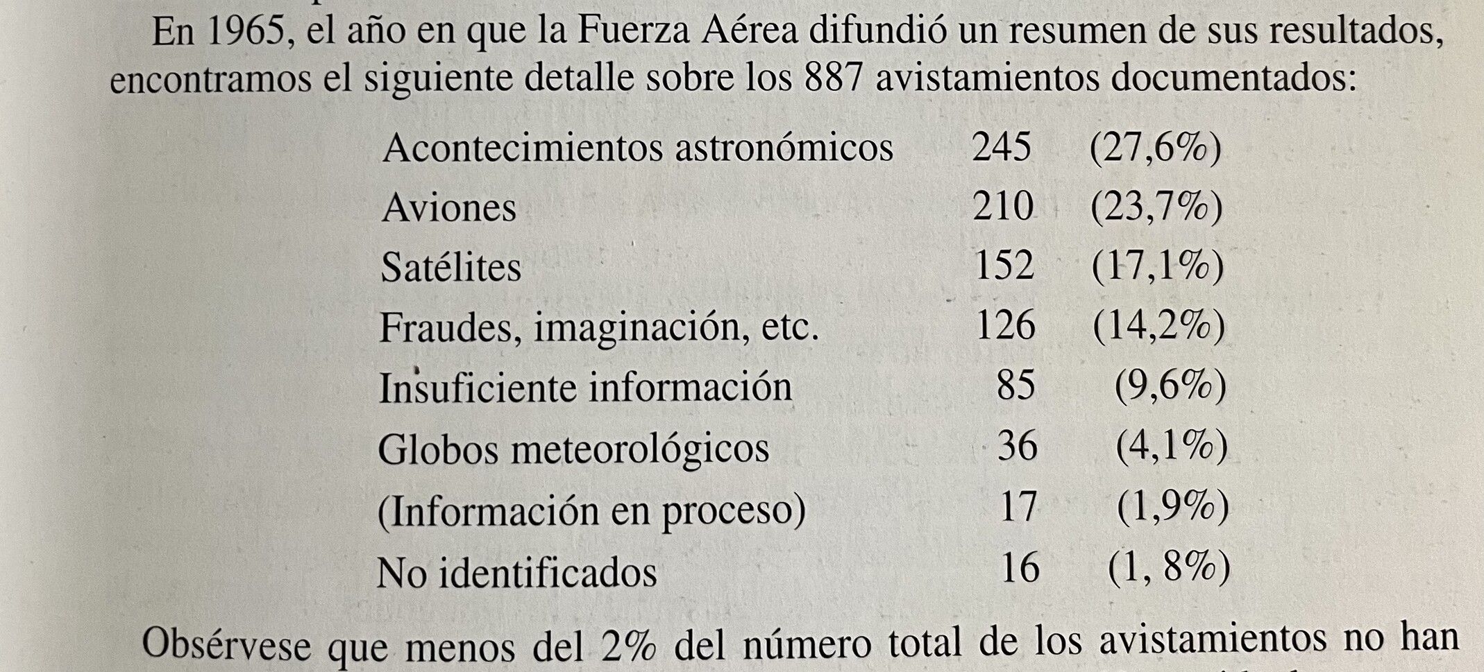 En 1952 iniciaron el proyecto Blue Book y sus conclusiones son las de la imagen.
