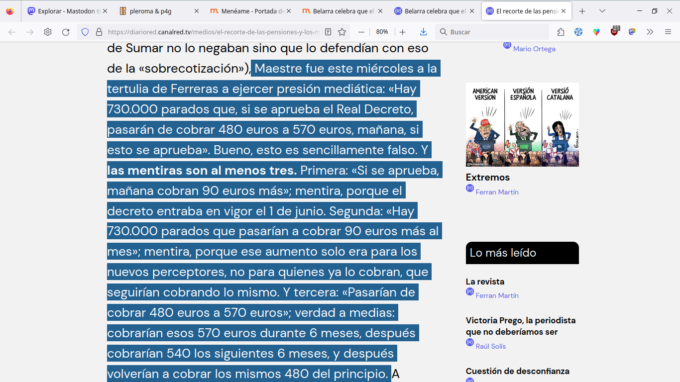 El recorte de las pensiones y los medios de comunicación Finalmente no se negoció nada con Podemos y en su lugar llamaron al PP para pedirle su apoyo. Cuando el PP dijo que no, entonces pasaron a la estrategia de la presión mediática