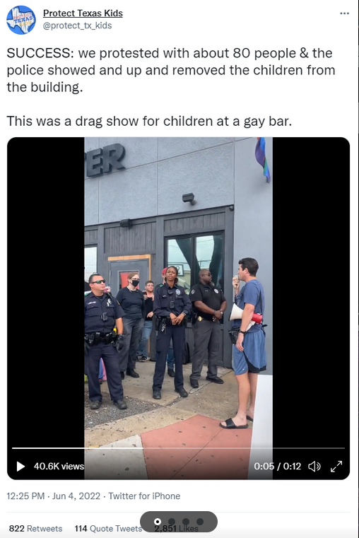 80 manifestantes se enfrentaron a un pequeño ejército de homosexuales, manifestantes armados y otros degenerados frente a un bar llamado "Mr Mister" en el "barrio gay" de Dallas, en el que los niños entregaban dinero a las drag queens que bailaban. La policía finalmente sacó a los niños del bar y citó al dueño del bar por múltiples violaciones de la ley de Texas.
