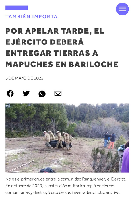 Traidora a la Patria , ordenó entregar tierras del Ejercito Argentino,a los Mapuches.