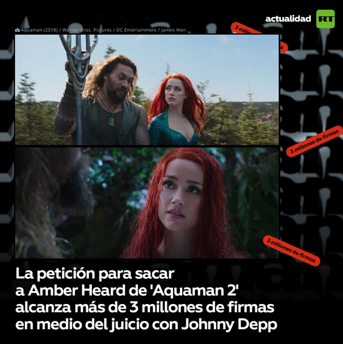 Más de tres millones de personas han firmado ya la petición creada en el portal Change.org para sacar a la actriz estadounidense Amber Heard de 'Aquaman 2', cuyo estreno está previsto para marzo de 2023. Los signatarios acusan a la modelo de cometer abuso doméstico contra su excónyuge, Johnny Depp.