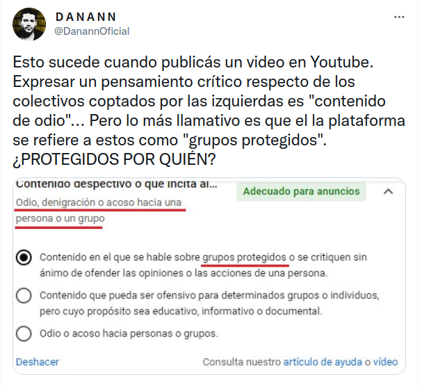 ... Pero lo más llamativo es que el la plataforma se refiere a estos como "grupos protegidos". ¿PROTEGIDOS POR QUIÉN?