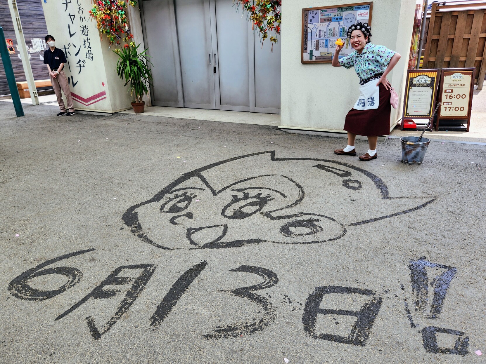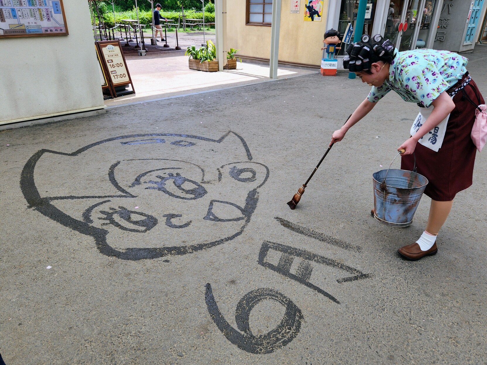 A lady with curlers came and drew astronomy (atom) using... just water.
