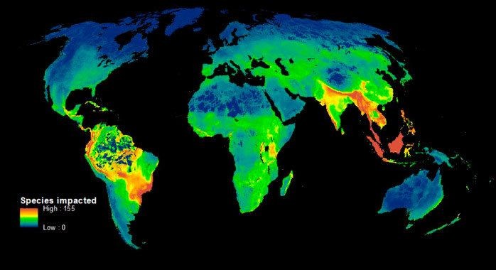 El primer mapa que muestra cómo los humanos destruyen la biodiversidad