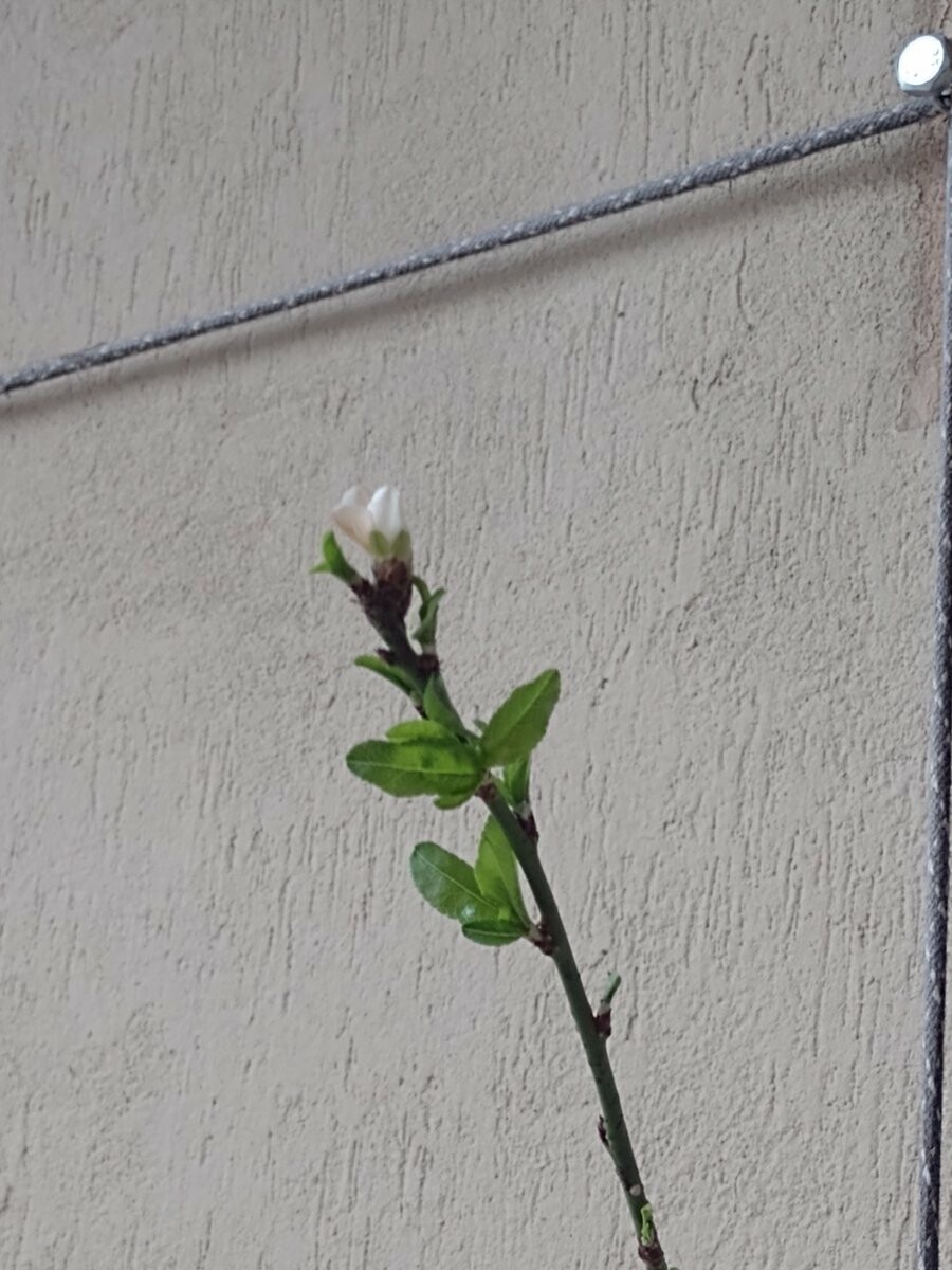 El primer árbol q germine es este almendro de 1.9mts que recién ayer dio su primer flor.