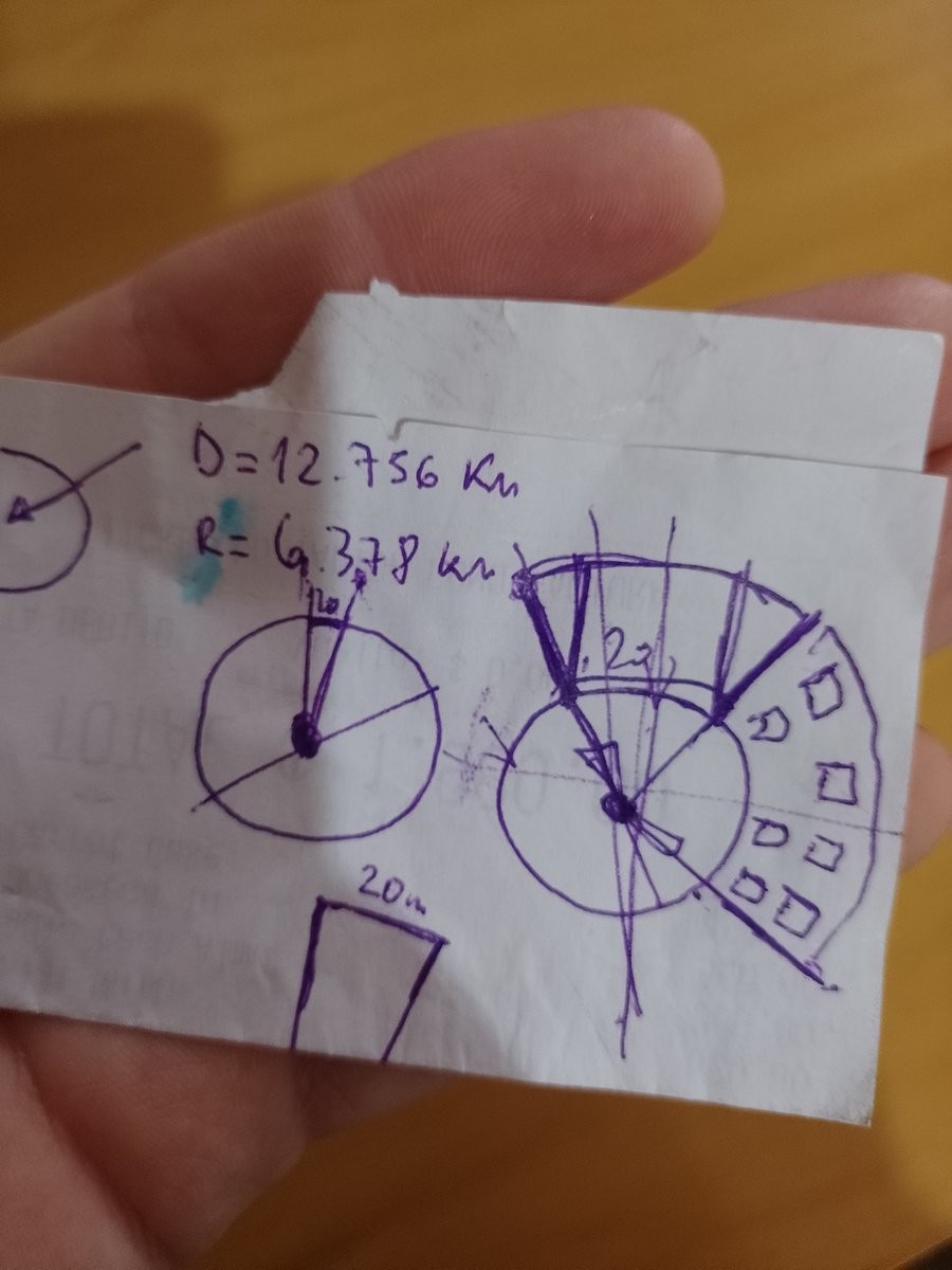 En un bolsillo de la mochila la explicación de como serían los edificios en un planeta mas pequeño